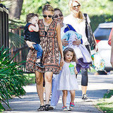 Nicole Richie held her daughter Harlow's hand and carried her son Sparrow as they left a playground in LA yesterday. The trio were off for a playdate without dad Joel Madden, who has been touring with Good Charlotte. He's away from his wife and kids on Valentine's Day, but he did tweet a sweet holiday message to his loved ones. Nicole has been busy herself balancing play dates with her little ballerina and superhero while promoting her new Winter Kate and House of Harlow collections. She skipped out on New York Fashion Week to spend the weekend on the West Coast, but she'll be back to the Big Apple to co-host The View tomorrow morning.